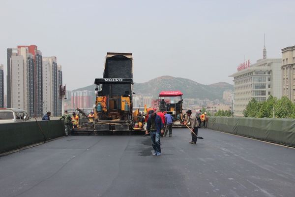 為保證此次試驗段攤鋪順利進行,公司領導和各部門多次到場指導,同時攤鋪項目部和二環南四標項目部密切配合,精心策劃和研究橋面瀝青砂防水層施工方案。此次試驗段攤鋪將合理確定施工機械數量及組合方式,確定攤鋪溫度、攤鋪速度、平衡梁找平方式、松鋪系數、接縫方法等操作工藝和技術數據,為進一步完善設計及施工方案,確保后續橋面瀝青攤鋪施工質量、建設精品工程打下堅實基礎。