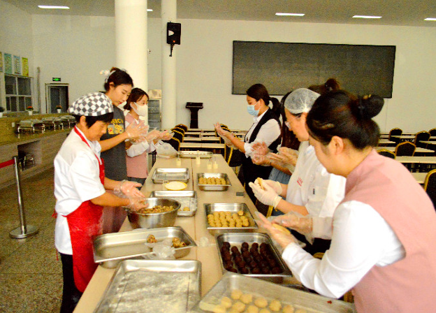 月到十五分外明,人到中秋情更濃。在中秋節(jié)前夕,匯通公司團支部積極組織青年職工開展“團圓迎中秋,巧手做月餅”中秋節(jié)主題活動。 活動得到青年職工的積極響應,在面點老師的悉心指導下,青年職工現(xiàn)場體驗了月餅的制作過程。在拿到原料后,大家躍躍欲試,紛紛按照流程,滾圓、壓模、脫模,“大展身手”忙得不亦樂乎,在一雙雙巧手的揉捏下,一個個圓圓的月餅團出現(xiàn)了,一會兒功夫就做了滿滿幾大盤月餅。現(xiàn)場熱火朝天,大家一張張綻放的笑臉,手里一塊塊的月餅,處處流露著收獲的喜悅。 “團圓迎中秋,巧手做月餅”活動讓青年職工感受到了節(jié)日的氛圍,進一步了解了中國的傳統(tǒng)節(jié)日文化,一搟、一推、一包、一揉、一壓,一烤都浸透著