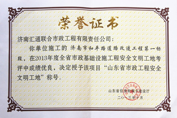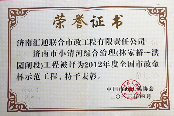 山東匯通建設(shè)集團有限公司是成立于2003年的國有大型企業(yè),注冊資本金3億元,擁有市政公用工程施工總承包壹級資質(zhì)、鋼結(jié)構(gòu)工程專業(yè)承包資質(zhì),是山東省市政行業(yè)知名企業(yè)、濟南市市政行業(yè)骨干企業(yè),通過質(zhì)量、環(huán)境、職業(yè)健康安全一體化管理體系認證。