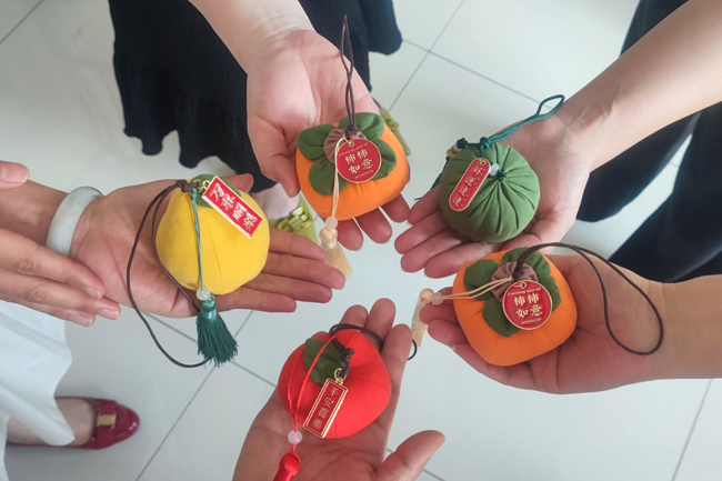 民間素來有諺語“戴個(gè)香草袋,不怕五蟲害”。每逢端午節(jié)來臨,除了包粽子還有一個(gè)縫制佩戴艾葉香包的習(xí)俗,驅(qū)瘟避疫、強(qiáng)身健體,足以看出人們對美好生活的向往之情,因此,匯通集團(tuán)分會(huì)還貼心的為大家準(zhǔn)備了寓意美好的艾草香囊,有萬事順梨、好運(yùn)連連、柿柿如意、平安喜樂等,香囊的艾味濃郁,顏值頗高,讓大家愛不釋手,連連稱贊。